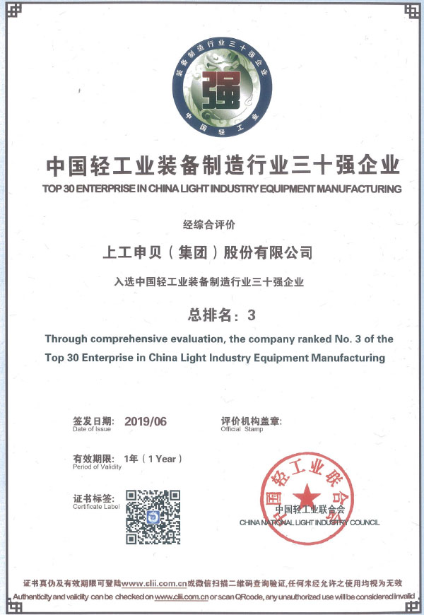 中国轻工业装备制造行业三十强企业(排名第三)