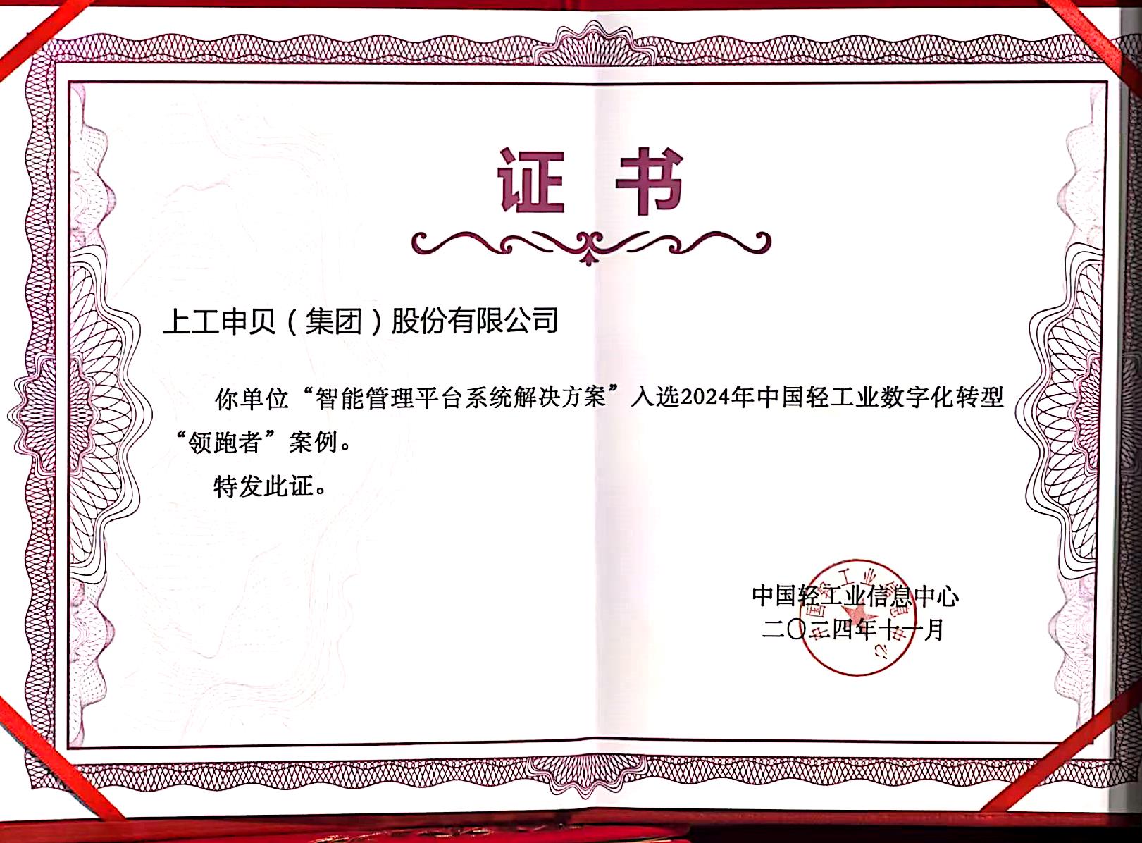 入选2024年中国轻工业数字化转型“领跑者”案例