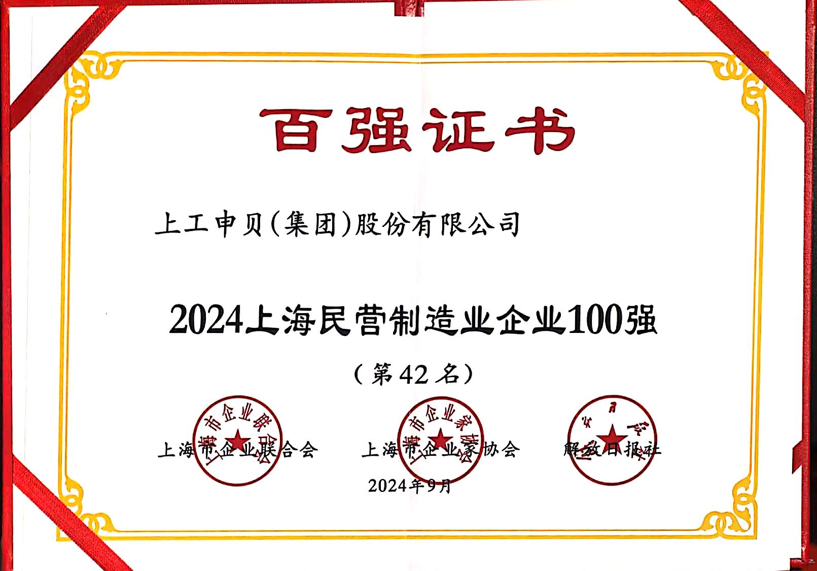 上海民营制造业企业100强(第42名)