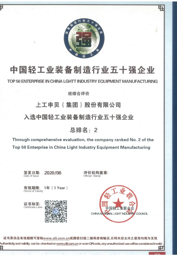 太阳集团tyc4633(集团)股份有限公司入选中国轻工业装备制造行业五十强企业(第2名)