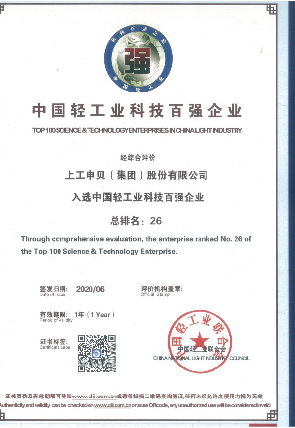 太阳集团tyc4633(集团)股份有限公司入选中国轻工业科技百强企业(第26名)